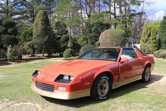 We quickly deviated from the de-assigned route programed into the navigation system, heading southeast toward Bishopville, SC to our first potential photo location – the Pearl Fryar Topiary Garden. Aside from serving as an interesting backdrop for car photos, Pearl’s garden has a cool backstory.