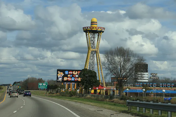 But at this point we were only about 85 miles into a 500 mile drive, so we needed to get back on the road and hit our next stop – a spot called South of the Border in Dillon, SC. Founded as a small watering hole just outside of the dry counties of North Carolina, the business quickly took off, expanding into a hotel, fireworks depot, restaurant, and a generally wild-looking roadside attraction.