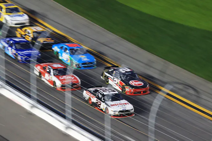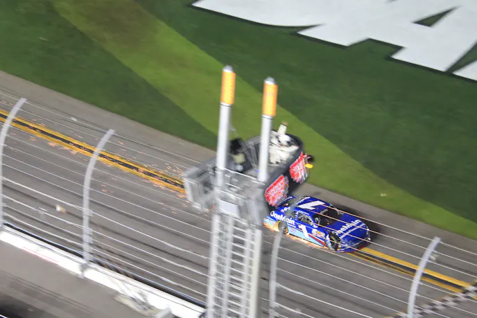 Still, two massive crashes occurred well before the first mandatory caution could take effect, both resulting in red flags, and by the start of the second segment 12 cars had already been taken out of the race entirely. But it did make for entertaining racing while under green flag conditions, and the delays pushed the race past dusk, giving us a chance to check out Daytona International Speedway in all of its night time splendor.