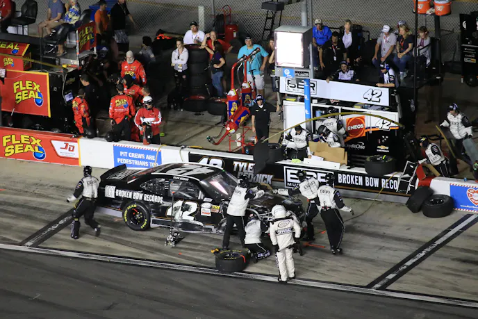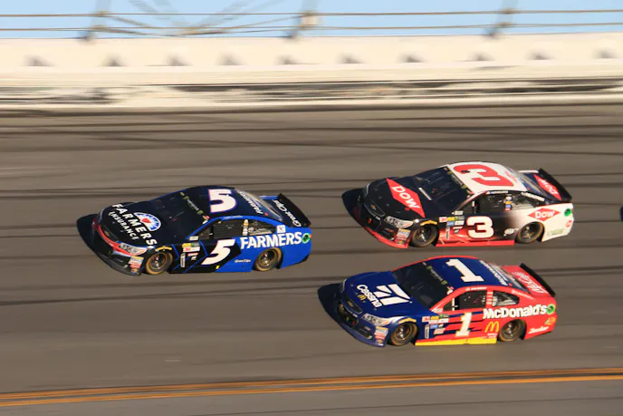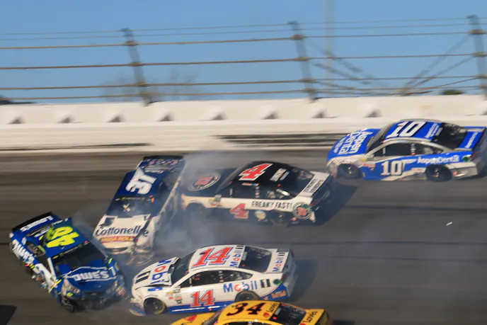 Part of the reason the 300 went into nightfall was due to the carnage we watched unfold during the race. Pivotal changes have been made to the NASCAR series this year, including a reduction in downforce from 3000 pounds at speed (just under 200 mph) to just 1200 pounds, along with a mandatory caution period every 30 laps or so. The latter of which is particularly crucial, as they not only give teams the opportunity to do quick pit stops with no penalty to their position on the grid but also because it forces the field to bunch together again, eliminating any sizable gap that might’ve been created in the previous laps and greatly enhancing the chances for car-to-car contact.