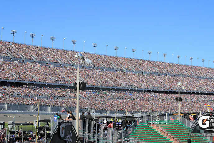 After procuring our press credentials, our group descended upon Daytona International Speedway. Still a few days away from the big game, the emptiness of the venue made it seem even more vast. The 2.5-mile speedway seats more than 100,000 spectators in the bleachers, and that’s to say nothing of the numerous sky boxes, media centers, and other buildings found throughout the infield.