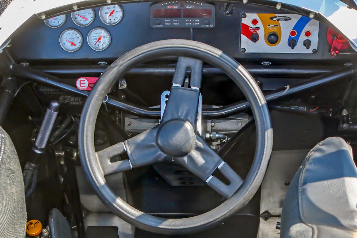 “We have a sequential shifter in it that makes it easy for a guy to shift fast. We changed the rearend to be a limited-slip, which gives a more comfortable feel for the driver who’s never driven a car with a solid axle. The car was built to have everything you would find in an everyday road race car, including data acquisition, road racing brakes, and a fire-suppression system.”