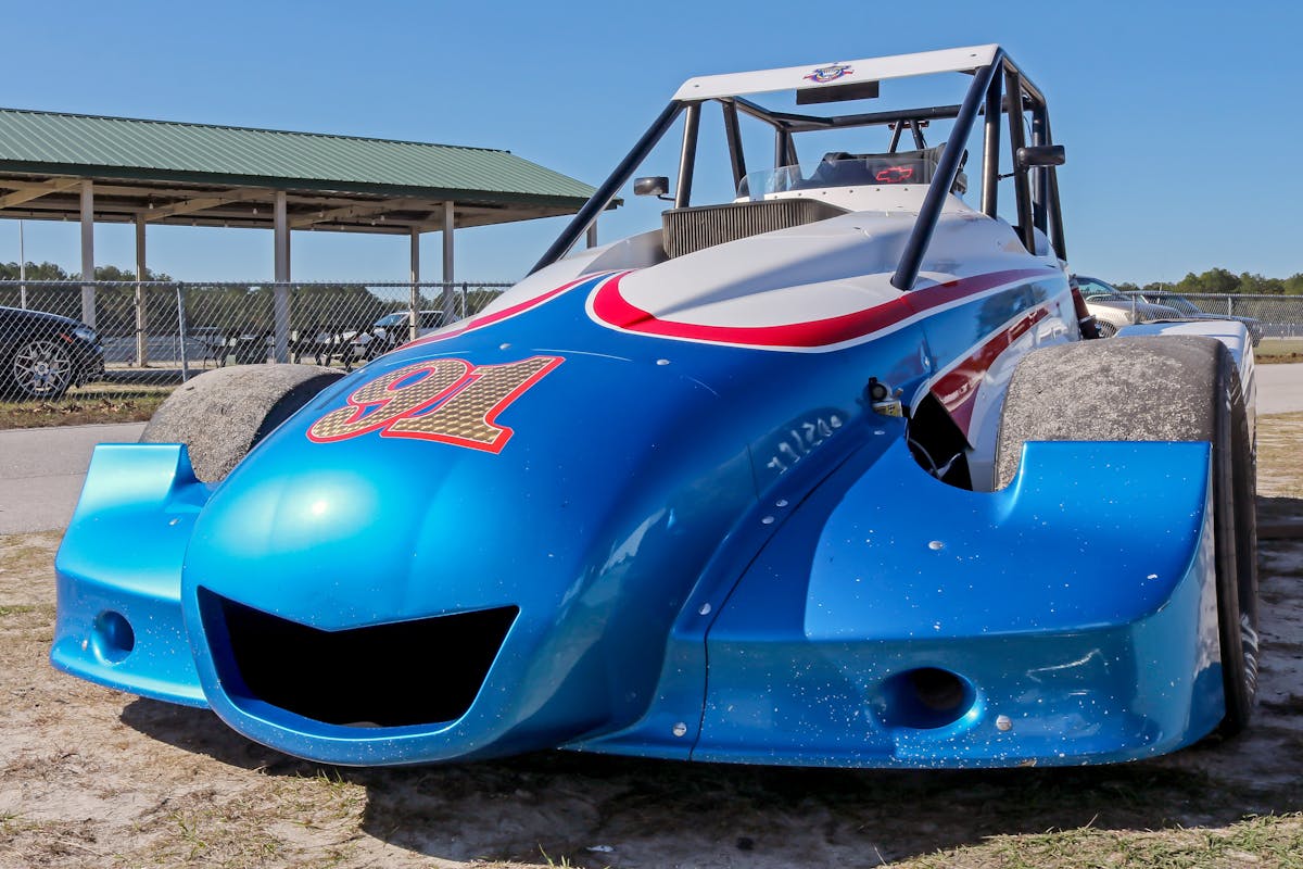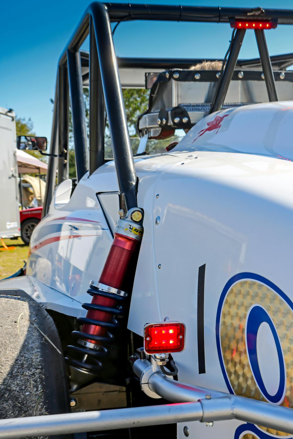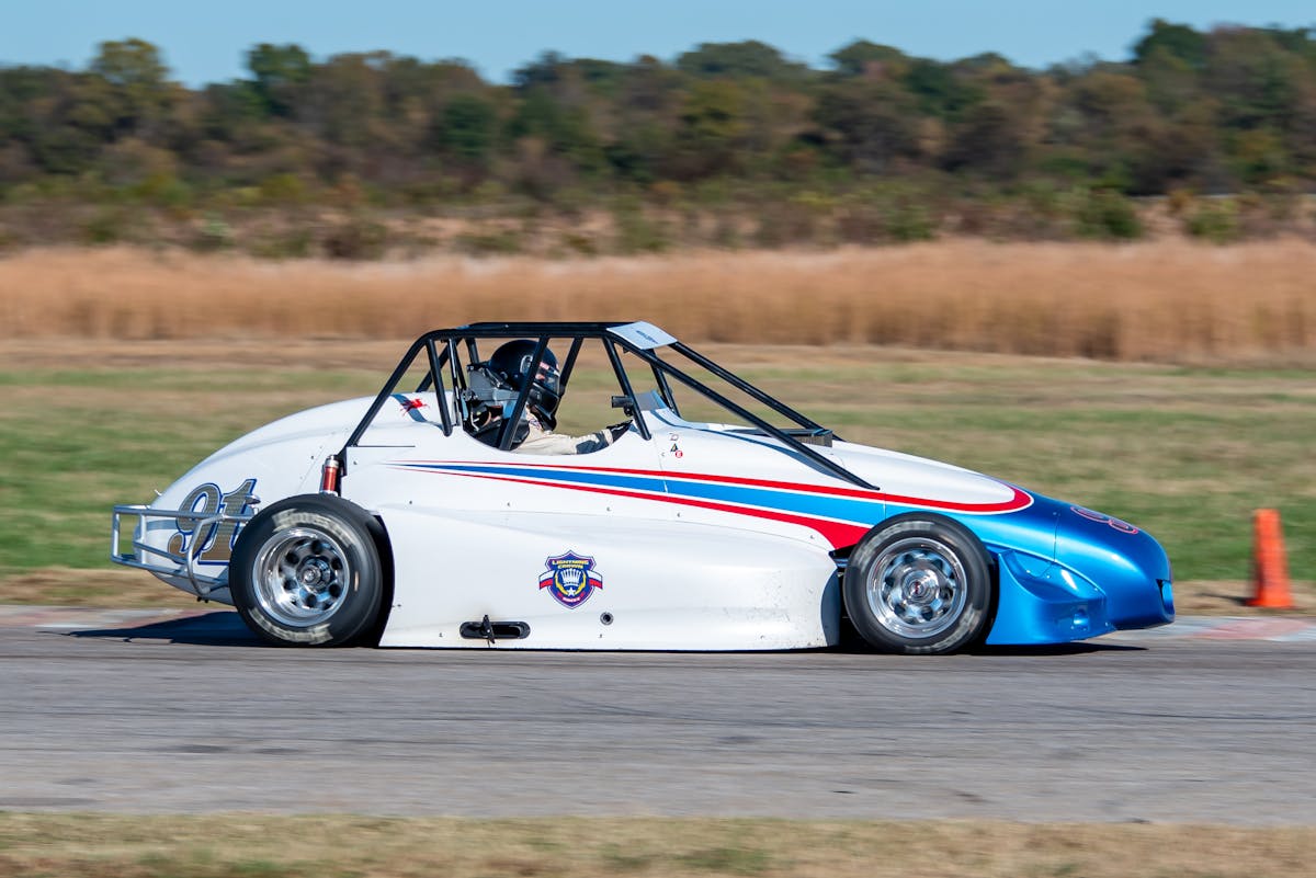They designed crush structures to better absorb higher-speed impacts. The nose and side pods prevent wheel-to-wheel contact, which often launches cars into the air. The body eliminates lift, which the old Silver Crown cars struggled with at larger tracks. They built the car with a centerline balance — unlike a typical left-weighted oval-track car — to not necessarily run road courses but to reduce corner speeds.