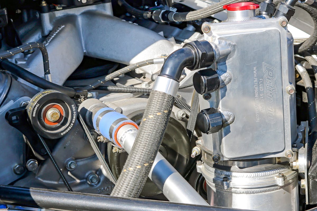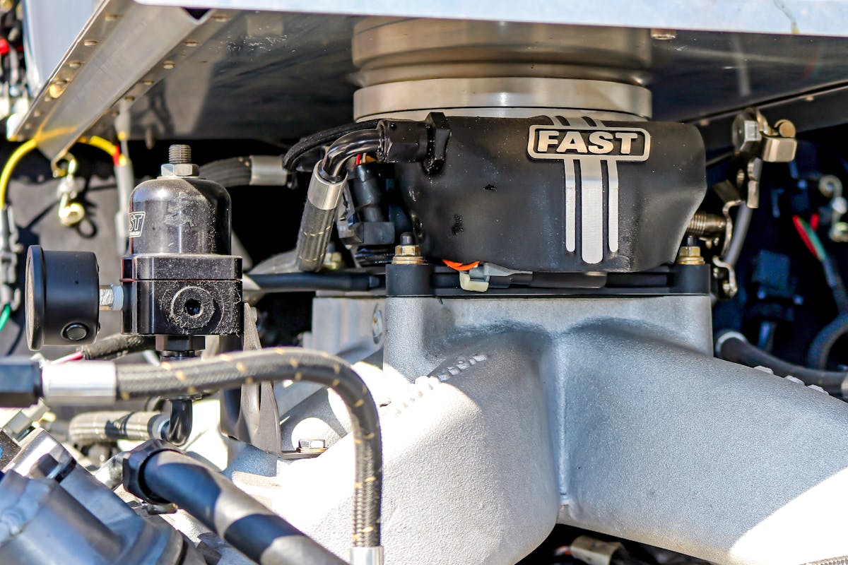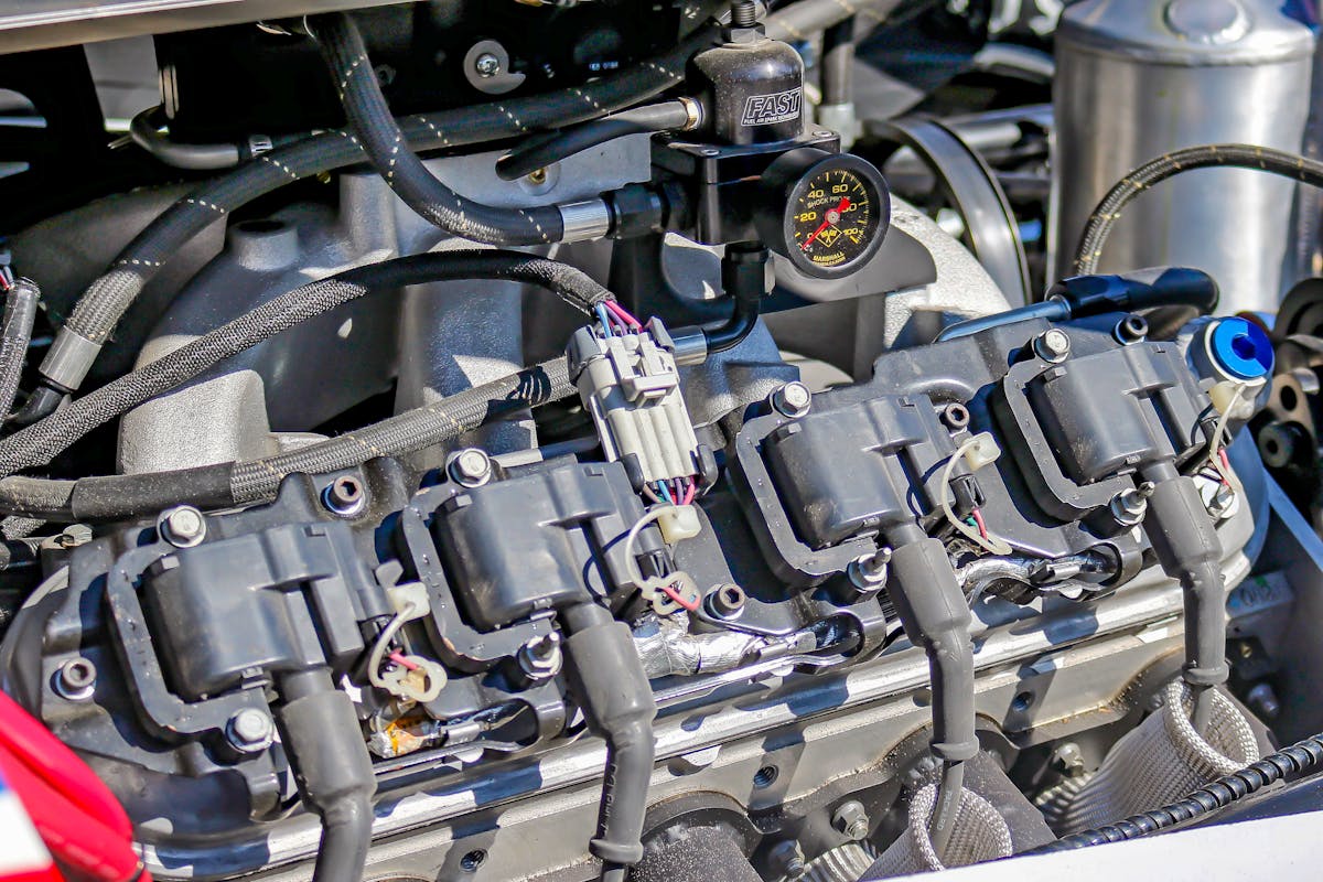 One of the most noticeable changes is the powerplant. Gone is the conventional Chevrolet small-block engine with mechanical fuel injection, running on methanol. Now installed is a stock Chevrolet LS3, with a FAST EFI throttle-body system running on 93-octane pump gas, putting out roughly 450 horsepower.