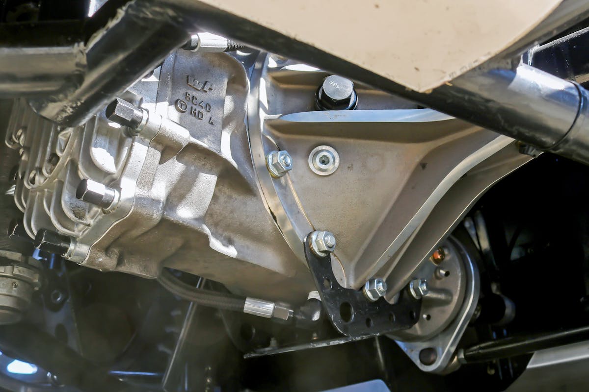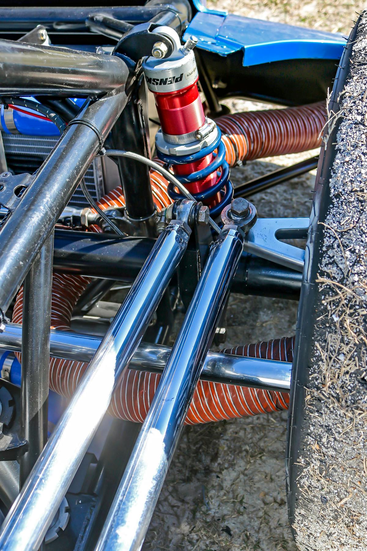 “We have a sequential shifter in it that makes it easy for a guy to shift fast. We changed the rearend to be a limited-slip, which gives a more comfortable feel for the driver who’s never driven a car with a solid axle. The car was built to have everything you would find in an everyday road race car, including data acquisition, road racing brakes, and a fire-suppression system.”