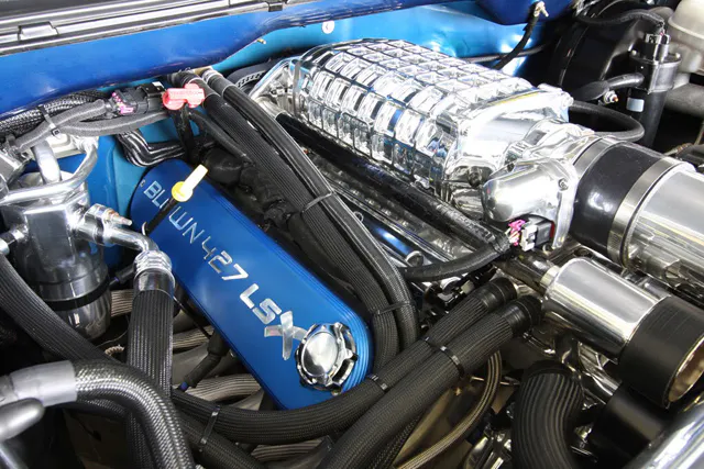 By not cutting corners during the engine build LaManno continued to focus on the details throughout the entire project in order to achieve something that stood apart from the crowd. House of Kolor was responsible for the lavish hues used to create the eye-catching paint scheme. The two-tone paint features a pearl blue on the top half of the truck that is separated from the metallic blue used on the lower sections by silver-leaf pin striping. Subtle touches like shaving the door handles, tailgate handle and a Gaylord’s roll pan add to overall smooth look of the Silverado.