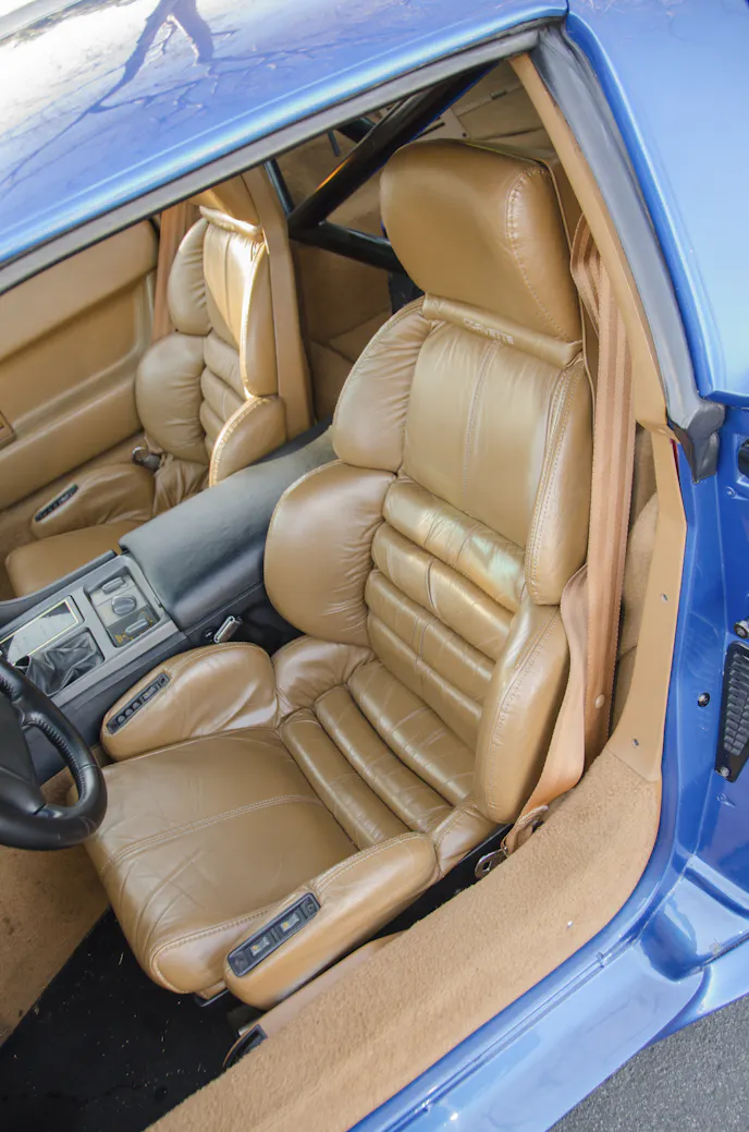 Going way more than just one better, Guldstrand hired engine tuner Doug Rippie to raise the Lotus LT5’s factory output from 405 to 475 hp at the rear wheels. In addition, he switched out the transverse left springs for adjustable coilover shocks at all four corners, and also put on fatter rubber, the largest 18-inch Michelin Club Sport tires available at the time, measuring 335/30 and wrapped around wide OZ 3-piece wheels. He also fitted into the chassis a race-style, cross-braced roll bar and fire extinguisher.