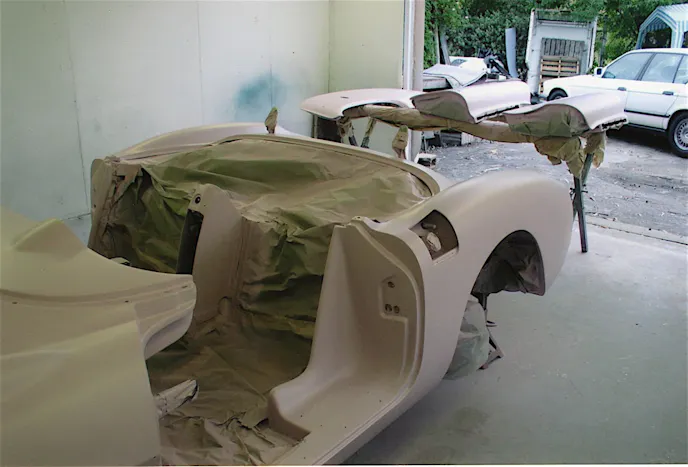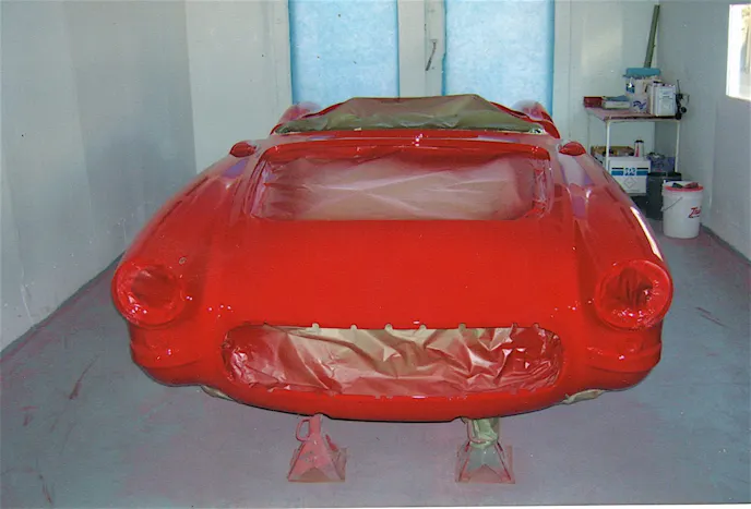 Furthermore, Jim tells us, “I drove the car in bare fiberglass for almost a year before turning it over to the paint shop to complete the final sanding and apply 1998 Ferrari Rosa Corsa Racing Red Glasurit paint.”