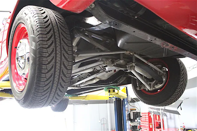 The entire ’85 suspension and brakes were utilized and the Tremec six-speed from the Camaro was hooked up to a 3:73 rear end.”