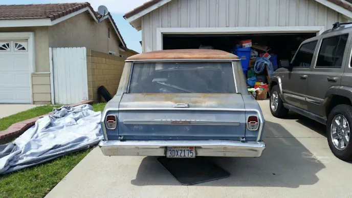 Joe originally discovered the Nova in 2014 while perusing one of his favorite Nova sites. The car was in good shape and located in nearby Los Angles, so he decided to go have a look at it. The engine and transmission were missing but the body on the car was in great shape—especially considering the car had been sitting since the ‘80s. Aside from the lack of drivetrain, the car was almost fully complete and sported a patina’d blue exterior with a matching blue interior.