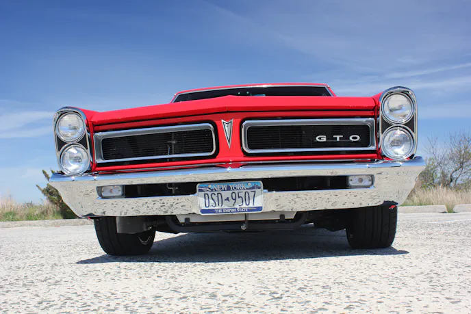 Batting cleanup, Steve flew to Oklahoma, where he laid eyes on a two-owner, 265,000-mile example. Originally a factory Iris Mist, the 389 cubic-inch engine, four-barrel carburetor, four-speed car had a 3.36:1 axle rear and no power steering. The second owner had fully restored the Goat in 1998, including stunning Torch Red paint, adding power brakes, and dropping in a RamAir III 400 cubic-inch Pontiac V8.