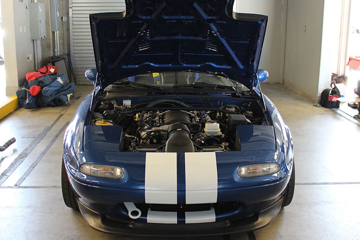 Flyin’ Miata also applies a custom tune to the ECU to improve both power and drivability in this application, and there’s even some tweaks the company can make to ensure the car is compliant with California smog laws.