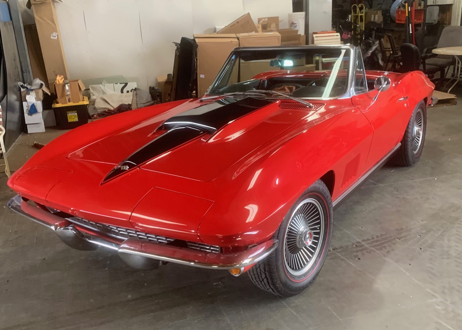 In 1993, Tom bought the old roadster with a 327 cubic inch V8 and a Saginaw three-speed transmission. Other than that, this particular C2 Corvette was a “stripper,” with no power steering or brakes delivered from the factory, F.O.B from St. Louis.
