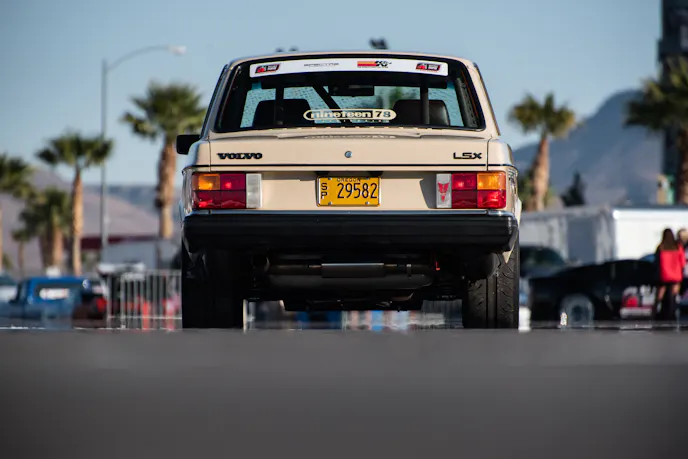 With the hood closed, windows rolled up, most people might walk right by this 1983 Volvo 240 –but once you start looking at it, you can tell it’s far from stock. The LSX badge will be your first clue. Under the hood is a 2008 Gen IV 6.0-liter stock long block that was pulled from a 3500 van, topped with an LSA supercharger. The engine is mated to a warmed-over 2002 Camaro T56 transmission with a narrowed 31-spline Ford Explorer 8.8 rear end with disc brakes.