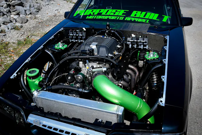 Don’t ask Michael about the numbers, he’s never had his LS swapped Fox Body strapped down to a chassis dyno for a glory pull. He cares more about how it performs than the internet clout from a dyno graph. He estimates that it makes somewhere in the neighborhood of 800-900 horsepower on the 13 psi the blower pumps out without the undisclosed shot of nitrous.
