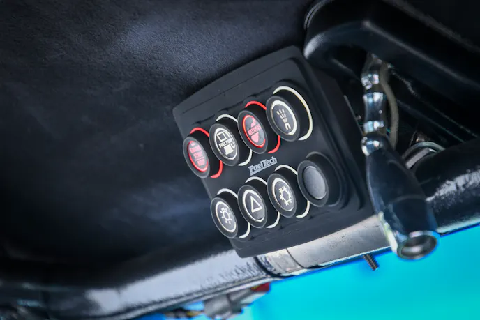 Under the hood of this notchback Mustang is a 404 cubic-inch LS. Starting with a used aluminum 6.0-liter LS2 block, it was machined to fit its new rotating assembly from Molnar to up the displacement. Forged 4.010-inch bore pistons and a 4.000-inch stroke crankshaft are connected by H-beam connecting rods to create that 404 cubic-inch displacement.