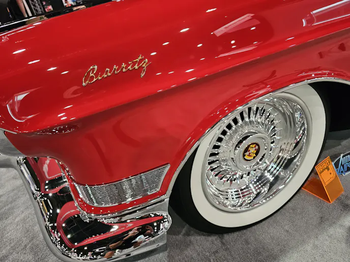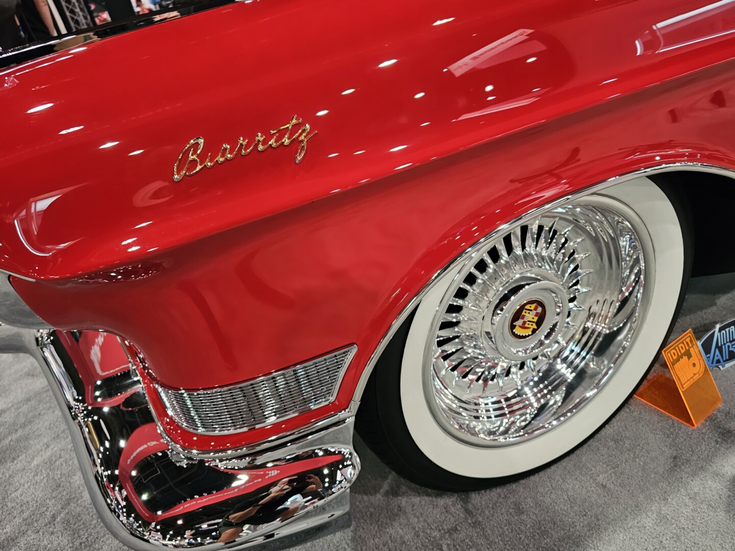 This 1957 Cadillac Eldorado Biarritz convertible, built by Mike Goldman Customs out of Meridian, Mississippi, was one of our favorites from SEMA 2023. Not only was the car meticulous and impeccably presented, but a powerful secret lay under her silky red bonnet. We were keen to find out her backstory so we gave a call to the maestro himself, Mike Goldman and he filled us in on the 411 of the car.