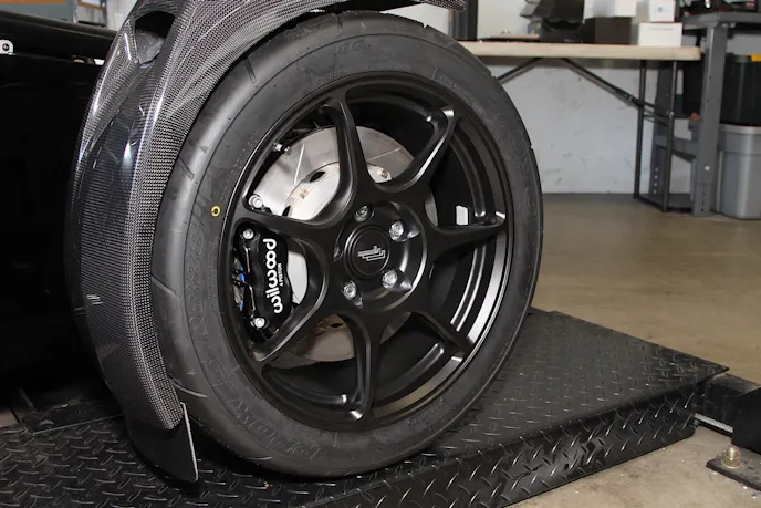 What we like the most would have to be all of the parts used to construct it. Everything can be easily sourced right here in the United States. The brakes are Wilwood forged billet four-piston calipers front and rear with GiroDisc rotors at all four corners, the gauge cluster is an AiM data-logging unit with configurable screens that can have additional sensors programmed into it, and the wheels are a custom design from HRE, which are actually quite interesting. Mapleton didn’t want just any design, so he came up with a mismatched spoke count idea that works really well, and is almost un-noticeable until you catch yourself asking, “do the front wheels match the rears?”