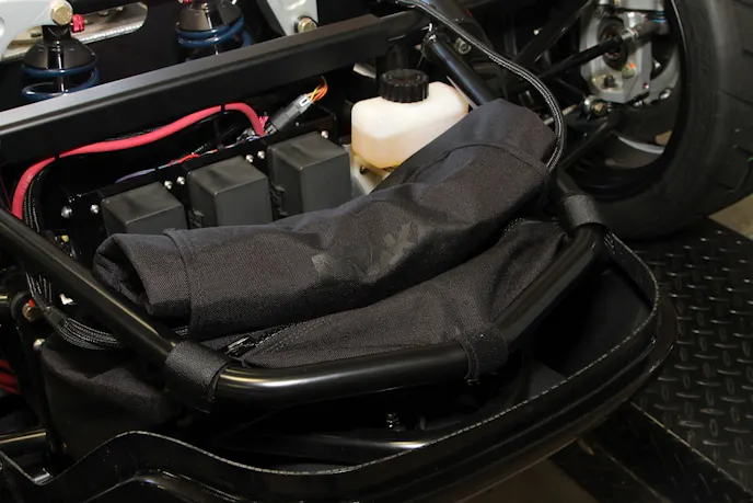 Even though we didn’t get to take the Drakan Spyder out on a racetrack, Mapleton hit a few corners with a generous amount of speed to show how stable it is. With virtually no body roll, it took corners without even breaking a sweat. The double-wishbone, inboard suspension setup contributes to the extra stability and the ability to not run sway bars. The specially-designed bellcranks also add to the stability of the vehicle. And, for those wondering, the Drakan’s center of gravity is very low; 13 inches to be exact!