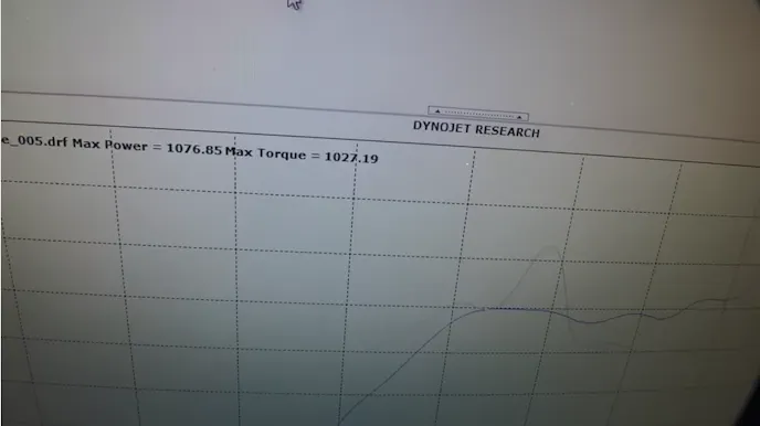On his next run, the truck put down 820 rwhp maxing out the boost controller at 23 psi. Instead of increasing the boost, Matt decided to see what the spray would gain him on his next run—this time with both kits turned on. As you can see in the video, as the nitrous comes on, a visible puff of something come out from under the hood—this was the second kit blowing loose. Nevertheless, Matt broke into the 1,000-horse range putting down an astonishing 1,076.85 horsepower and 1,027 lb-ft of torque with just the one kit of nitrous.