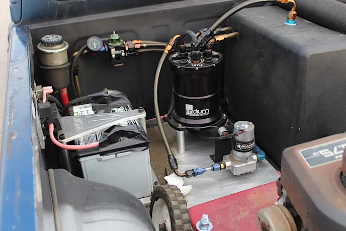 The entire system is run off a 0411 computer that has received an operating system swap that allows it run as a true flex fuel system thanks to a GM flex sensor. While this allows Jeff to choose his fuel, you’ll frequently find him running around with spare E85 jugs to make sure the truck is never without it.