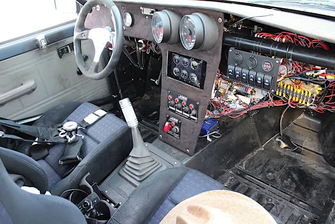 Backing the 4.8 is a T56 6-speed transmission borrowed from an early fourth-gen and converted to work with the LS style engine. The engine and transmission are coupled by a McLeod RXT twin-disc clutch. A custom driveshaft by Wenco sends the power out back to a Ford 9-inch stuffed with an Eaton Detroit Locker and 3.55 gears.