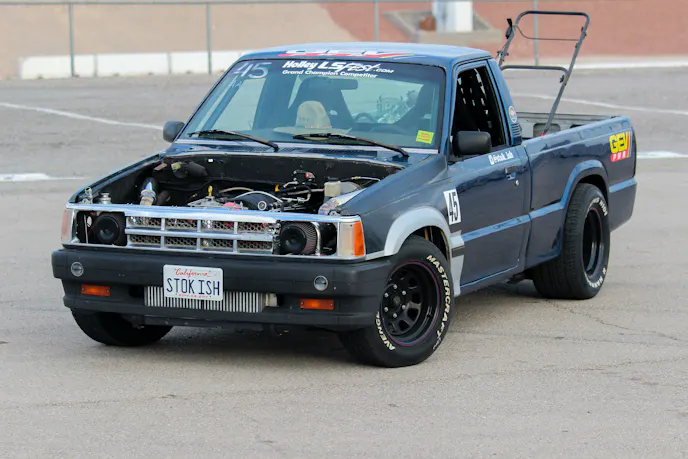 Jeff originally had a Mazda B-series truck back in high school, and even though it only had a slightly worked over four-cylinder, he tells us that he would race it all the time, frequently making trips to Willow Springs. So when he went searching for a project, a lightweight Mazda truck with a turbo LS seemed like the perfect idea. After convincing his buddy, who originally wanted to put an LS in an E30 BMW, that they should do something more original, they started looking for a Mazda—or rather Jeff did.