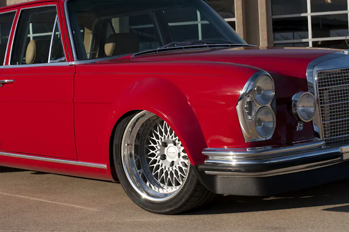 Josh started looking around for a Mercedes-Benz chassis that he could use to create his project car. AMG’s original Red Pig was a 1971 Mercedes-Benz 300SEL. The big luxury car won its first 24-hour race up against many naysayers’ opinions at the time, hence the derogatory name “The Red Pig.” This victory solidified AMG’s tuning ability and AMG was later adopted by the manufacturer, Mercedes-Benz, to create exotic and high performing Benz’s for years to come. Josh has owned a few AMG tuned cars, and he wanted his project car to have the exact same chassis that founded AMG –The Red Pig.