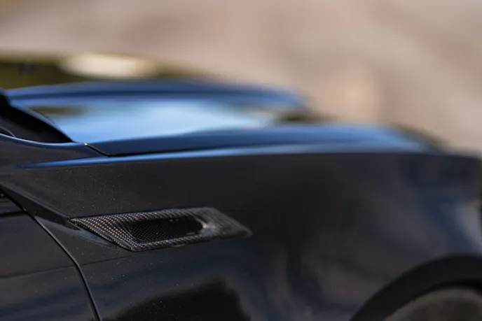 Inside, the car features a luxurious black Alcantara and leather interior. The upholstery remains stock, providing a comfortable and refined environment for both daily driving and long road trips. The only significant interior modifications are the addition of Aeroforce gauges and an Innovate Motorsports dual wideband gauge.