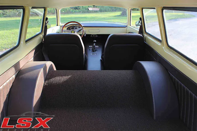 “I got the car back and I got looking at it, and looking at the coupes, and I realized that the front architecture on the door on a coupe had a longer door but the architecture was the same at the window,” Greg pointed out. “So I found a donor coupe and cut the doors and pillar off it and made this into a two-door wagon. From there the wheels went off the wagon.”