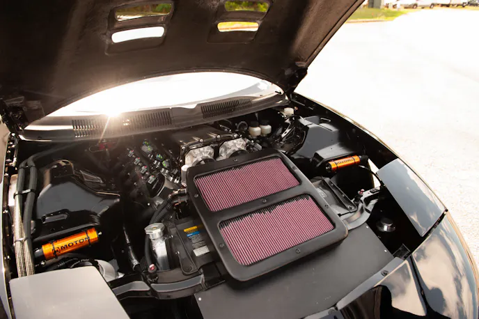 Over 11 months, 30 years of saving and planning turned into an unassuming, jet-black masterpiece — with Ilario’s infatuation with high-output naturally aspirated engines at the forefront. It was a somewhat stock-looking sleeper, intended to kick ass on the open highway and handle weekend road course action at the blip of the throttle. A street-legal GT3 version of a 4th gen Firebird, with an all-out 468 cubic-inch tall-deck LSR engine, a sequential gearbox, and a completely independent rear suspension underneath.