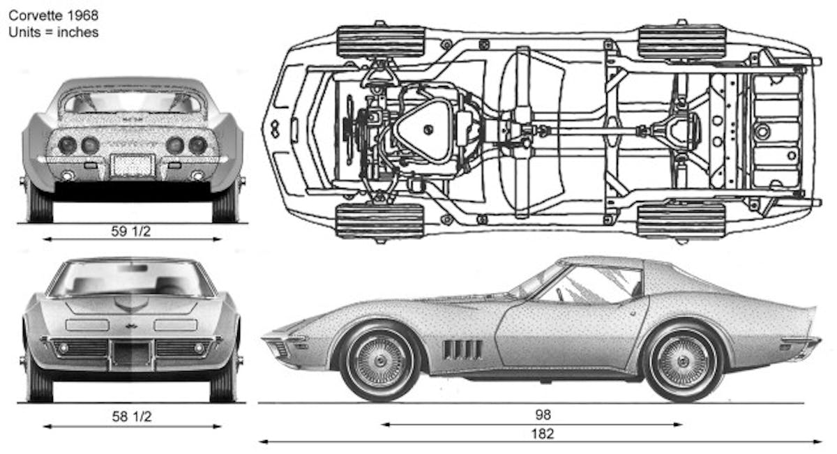 The 1968 Stingray (all one word now, as opposed to the C2’s Sting Ray,) was based heavily on the Mako Shark II concept car that wowed folks in 1965. It’s amazing to think that these show cars are 50 years old!