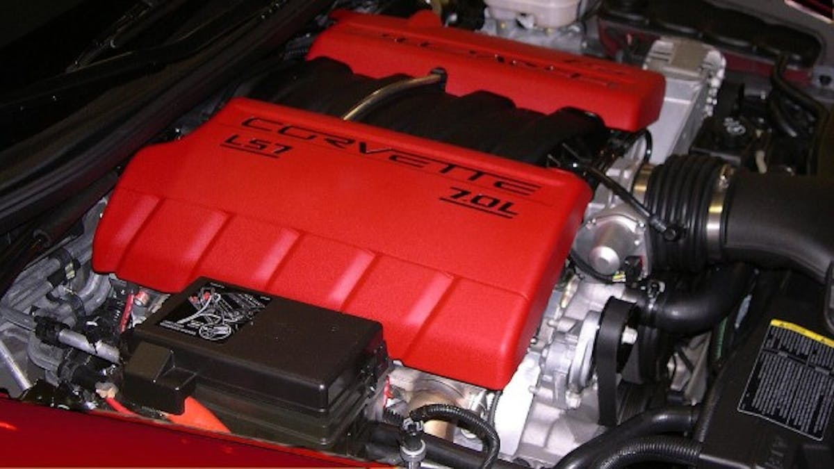 The LS7 sported a racing inspired dry-sump engine oiling system with titanium connecting rods and intake valves and a 7,000 RPM redline. The front cradle in the Z06 was now made from magnesium and the front fenders and wheelhouses were carbon fiber. The roof of the new Z06 was fixed for more rigidity and aerodynamics. Huge 14-inch front disc brakes with six-piston calipers and 13.4-inch rear disc brakes with 4 piston calipers were standard. The engines were hand-built at GM’s new Performance Build Center. Each engine was built by a single person and that builders’ name was attached to the engine.