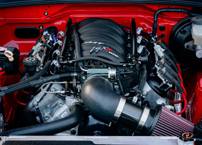 Internally, the V8 received an excellent array of Brian Tooley Racing goodies, including a Stage 3 camshaft, .660-inch dual valve springs, steel retainers, and chromoly pushrods, all controlled by an MS3 Pro Evo standalone setup by AMPEFI. The 5.7-liter LS also received a COMP trunnion kit and LS7 lifters, which significantly increased the virility of the V8 when coupled with a FAST LSXR 102mm intake. And a WARR 92mm throttle body was fitted with a 3.5-inch carbon fiber intake tube and a JLT air filter.