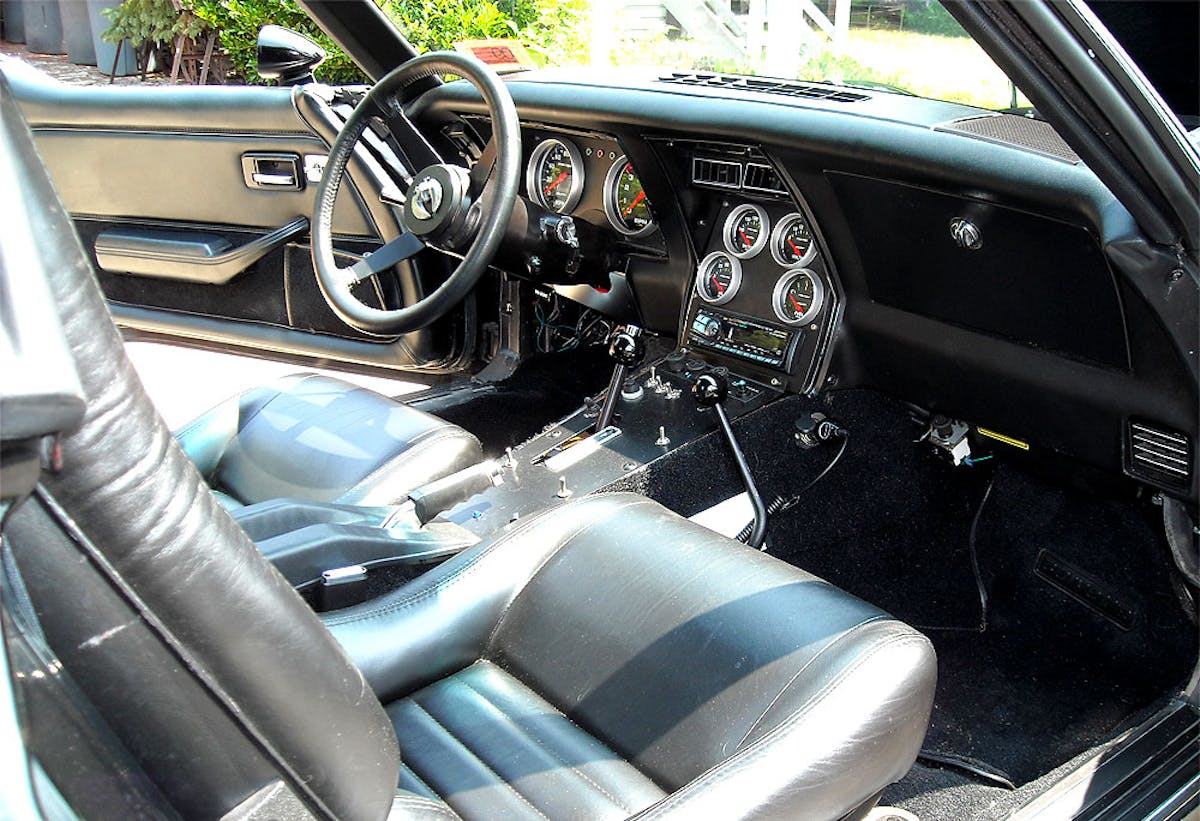 To accommodate the big tires, L88 road racing flares were grafted onto the front and rear fenders and a domed hood was needed to clear the Hemi’s dual-quads. The headlight buckets are from a Chrysler Imperial and the surf fishing rack doubles as a bumper. The original ‘81 rear bumper cover was shot, so Dewey used a ‘74 – ’79-style bumper cover and the rear taillights are LEDs. The rear spoiler is hand-made. Since this is a daily driver and beach machine, the roof rack is a permanent fixture so Dewey can fish whenever he can. With eight coats of Imron black paint and no badges or graphics, the car looks totally sano!