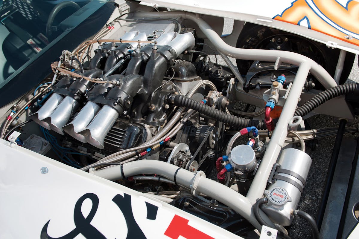 While the production-based Corvette had been choked to within an inch of its life by 1976, the rules that constrained street car design did not apply to IMSA racers. By then the Greenwood Corvettes were making in excess of 1000 horsepower thanks to a thoroughly massaged version of the L88 427 big block V8. Images: RM Sotheby's