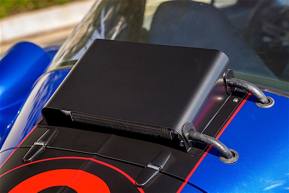An outboard differential oil cooler, which completes the iconic look, is also available. It can be functional or ornamental. In the case of our car, it was nonfunctional, but looked really cool and racy. The deep blue paint, including roundels and pin striping, accentuated the genuine Grand Sport look.