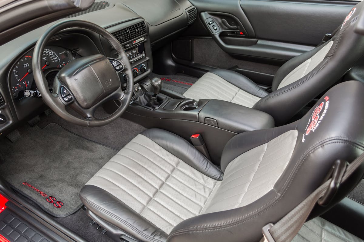On top of most option groups, the Camaro Z28s with the WU8-SS package were equipped with a higher output LS1 engine, resulting from a specific air-induction scooped hood and freer-flowing SS exhaust. SS badging, a taller rear spoiler, beefier suspension components, and 17×9 SS-specific wheels wrapped in 275/40/17 Goodyear Eagle F1 rubber completed the package.