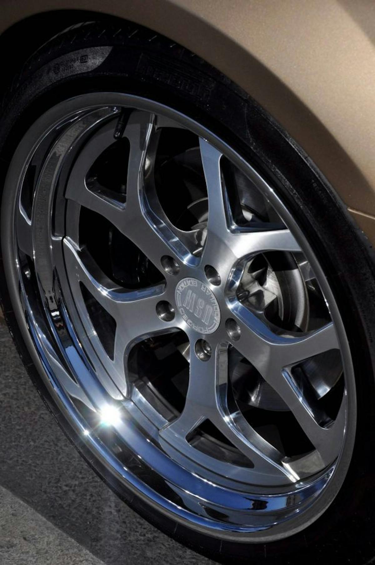 The distinctive wheels are one-off’s from USW Forged, in 21×10.5 in the front and 21×12 in the rear. A set of Pirelli P-Zero tires in 245/35/21 and 295/30/21 cover those big rollers. The best thing about this wheel and tire package is that it gives the car the modern “big-wheel” look, without taking it to a tacky extreme.