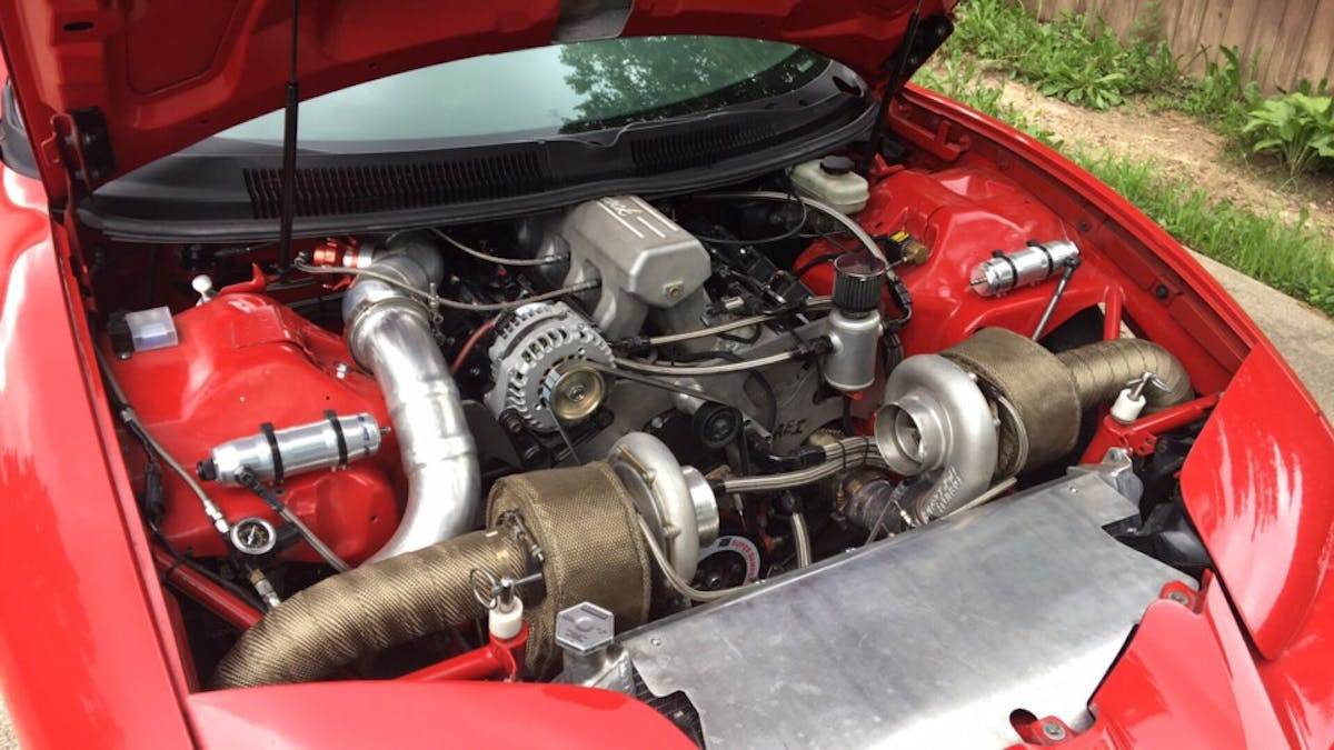 In 2009 Jeff decided to part ways with his then-current project, the Trans-Am, and purchase the red 2000 WS6 roller from a friend. Jeff stated,”I was building a 6.0L LS engine for my Trans-Am and it just made sense to upgrade to the newer body style. I decided to part out my car to build my first bad-ass 10-second turbo street car. One year later in 2010 the car made it out to the track on a single 80mm turbo, certified 8.50 cage and a 4L80E transmission and ran 9.50s.” Since then, the car has been updated every year and continues to go faster with a different combination of turbos, engines, and driveline.