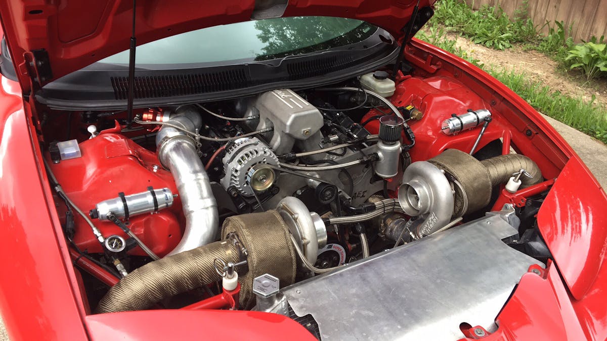 The current configuration for the WS6 consist of a Dart LSX block that is a mild 388 cubic-inches. The forged Wiseco pistons offer a compression ratio of 10:1 and are mated to a set of Callies Ultra billet rods and billet crank. The Bryan Tooley Racing roller turbo cam keeps the airflow moving with the help of the Trick Flow aluminum heads. Jeff is currently running a pair of 76/75 Precision Turbos that connect to the Edelbrock Pro-Flo intake manifold. For injection purposes Jeff turned to the pros at Holley Performance Products and utilizes a Holley EFI system. Jeff added, “I do all the wrenching, metal work fabrication, and tuning on my car, as well as machining of custom parts that are required.”