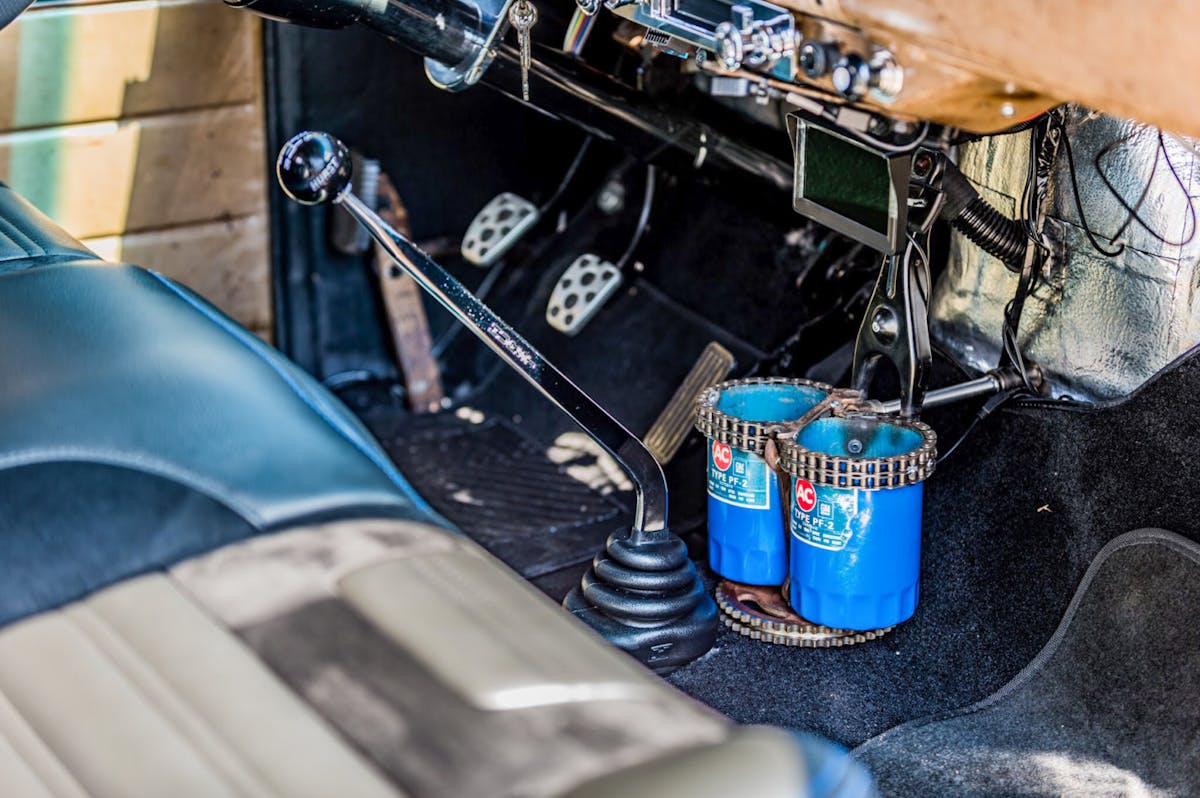 Like everything else on the Chevy, the interior needed some work, too. Casey installed a black TMI reclining bench seat with sued inserts, Auto Custom Carpet, new headliner, kick panels, door panels, and all new glass from auto city classics. Dakota Digital VHX gauges were used along with a Volante leather steering wheel, Retro Sound radio, and Dyna Mat was used throughout. Another cool mod is the custom-made cup holders made out of old AC Delco oil filters and a timing chain.