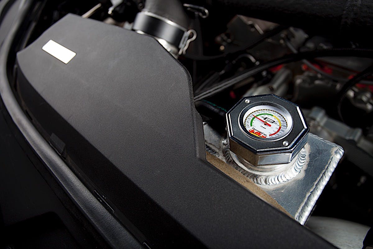 An air-to-water intercooler is used to keep the incoming air charge frosty and is hidden under the dash where the A/C would normally sit. In the trunk, the Caddy sports an easy-to-access ice box that allows the team to keep the intake air temperatures even lower.