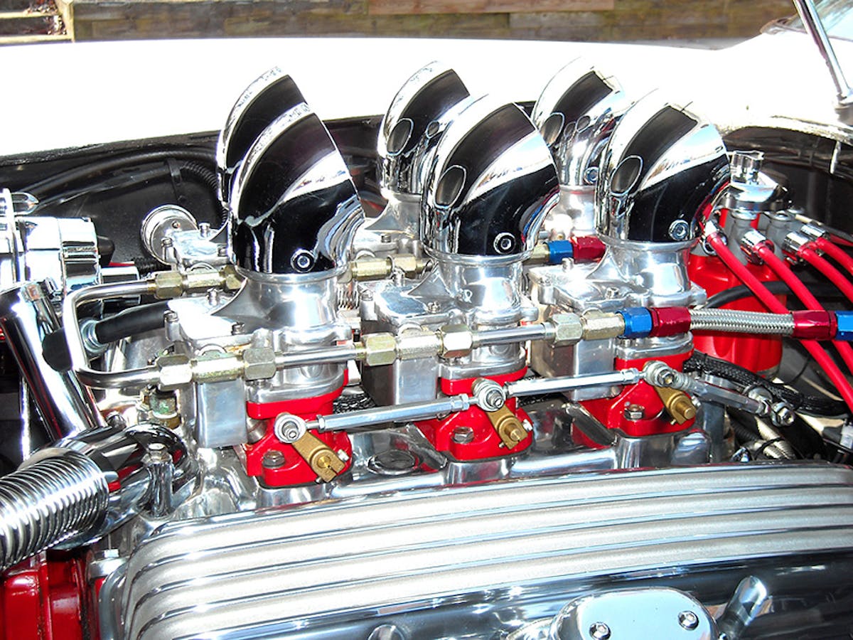 What looks like a six Stromburg carbs setup is actually a computer-controlled electronic fuel-injection system. It’s a beautiful blend of modern electronics with classic looks.