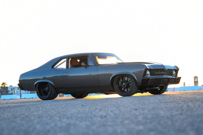 The finishing touch to the Boosted Nova’s transformation came through the artistic hands of Ricardo Lopez at Customs by Lopez. The bodywork was expertly perfected, ensuring that the muscle car would be a showstopper. Juan Sandoval Lopes was entrusted with the task of giving the Nova its stunning exterior identity, applying the BASF Anthracite Metallic paint. A layer of black pigment on the Auto Metal Direct aluminum hood and Harwood fiberglass bumpers added a dramatic twist to the Nova’s aesthetics. The result has a commanding presence, a street machine exuding power and elegance in equal measure.