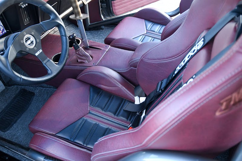 A full roll cage, artfully crafted by Lindsay at RJ Fabrication, provided an essential safety component. This was complemented by a Sparco five-point harness, ensuring Ken’s well-being in high-performance scenarios. The Nova’s interior is completed with carpet and a center console from TMI.