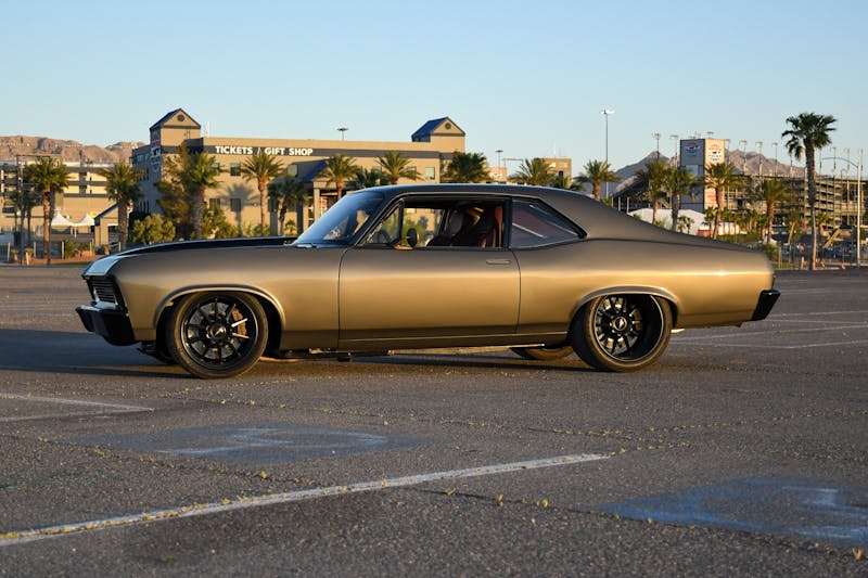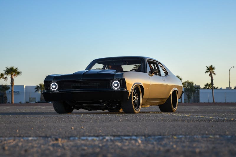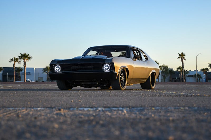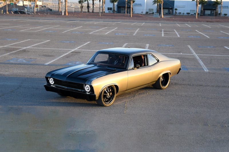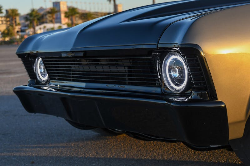 The finishing touch to the Boosted Nova’s transformation came through the artistic hands of Ricardo Lopez at Customs by Lopez. The bodywork was expertly perfected, ensuring that the muscle car would be a showstopper. Juan Sandoval Lopes was entrusted with the task of giving the Nova its stunning exterior identity, applying the BASF Anthracite Metallic paint. A layer of black pigment on the Auto Metal Direct aluminum hood and Harwood fiberglass bumpers added a dramatic twist to the Nova’s aesthetics. The result has a commanding presence, a street machine exuding power and elegance in equal measure.