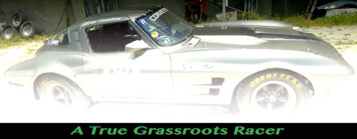 GrassrootsIn an industrial park just off Hercules Avenue in Clearwater, Florida there is a small, three stall garage that houses Ken Hazelton’s stable of vintage Corvette sports racers. Hazelton’s race shop is very functional; however, there is no clean room for engine rebuilds or a chassis dyno to determine optimum horsepower, there’s not even a lift to get his beautiful old Corvettes off the floor.