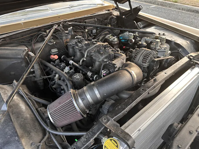 Josh eventually found a police impound Tahoe that he could steal the drivetrain out of. The new engine would be GM’s venerable 5.3L LS, and he’d also transplant the truck’s 4L60 4-speed transmission.
