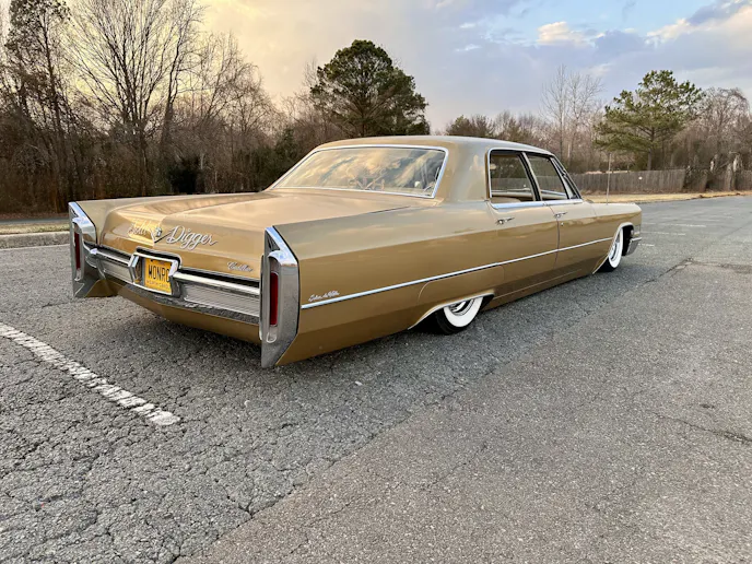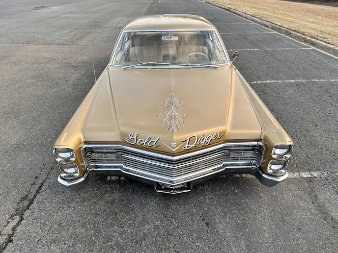 Speaking of Monroe, that’s where the story of the Gold Digger Cadillac begins. Well, not Monroe, North Carolina, but Monroe, Georgia. Josh was participating in the official automotive enthusiast pastime of perusing Facebook Marketplace when he spotted an ad for a gold 1966 Deville. So, he headed from Monroe to, well, Monroe and met up with an older gentleman who claimed the car was mostly original. While the A/C didn’t work, there were some transmission issues, and the clearcoat was peeling, the Deville was indeed a super solid, lightly restored 1966 post sedan. If you’re a Cadillac aficionado, you know that 1966 post Devilles are much more exclusive than their hardtop counterparts. Even better, as hinted by its respray, this Deville was confirmed to be a factory gold car.